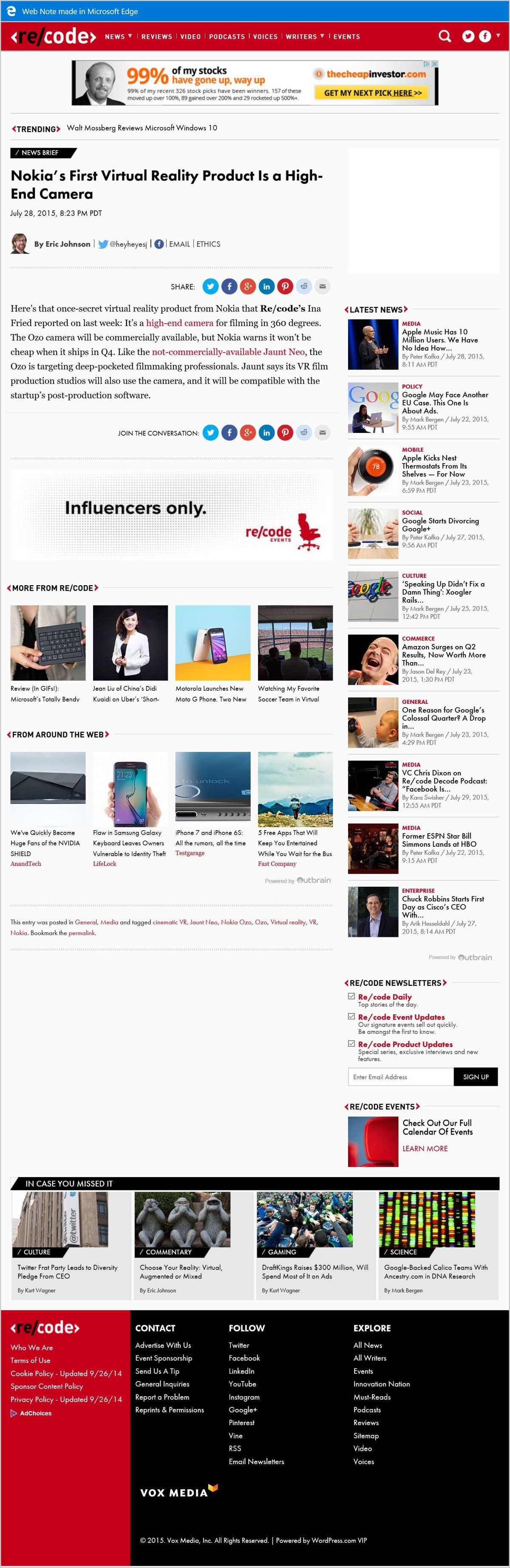 Microsoft Edge Web Notes on Nokia’s First Virtual Reality Product Is a High-End Camera | Re/code